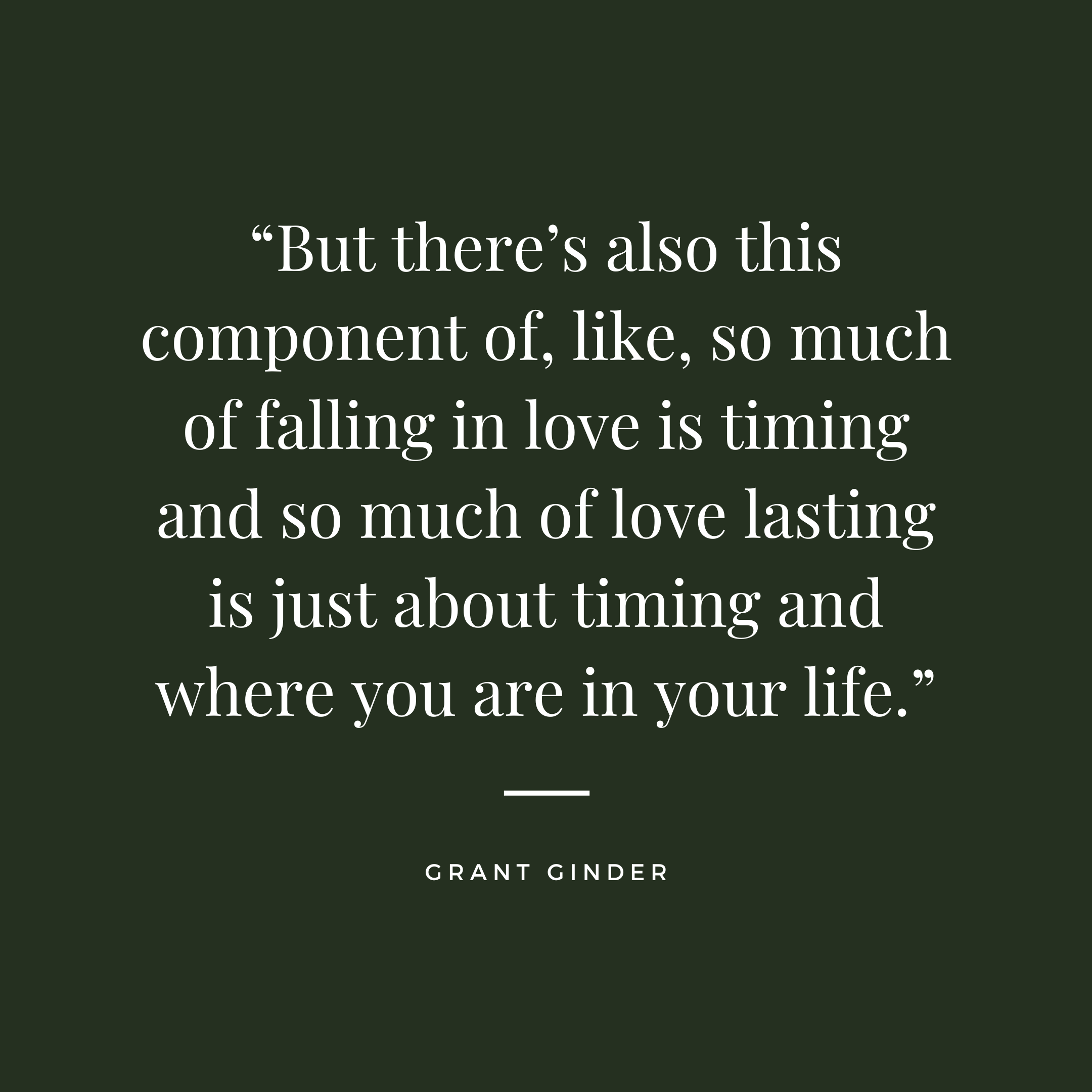 Grant: Thank you, that means so much to me. Yeah, with Richie and Adam, in particular, I wanted to play with timing. There’s obviously an addiction component with Richie and people very close to me have struggled with addiction. I wanted to explore [addiction] and show grace to that. But there’s also this component of, like, so much of falling in love is timing and so much of love lasting is just about timing and where you are in your life. And how tragic it is, when two people could have met at another point in life when they could have been together, if they had just met later. And particularly with Adam and Richie, I wanted to explore that.