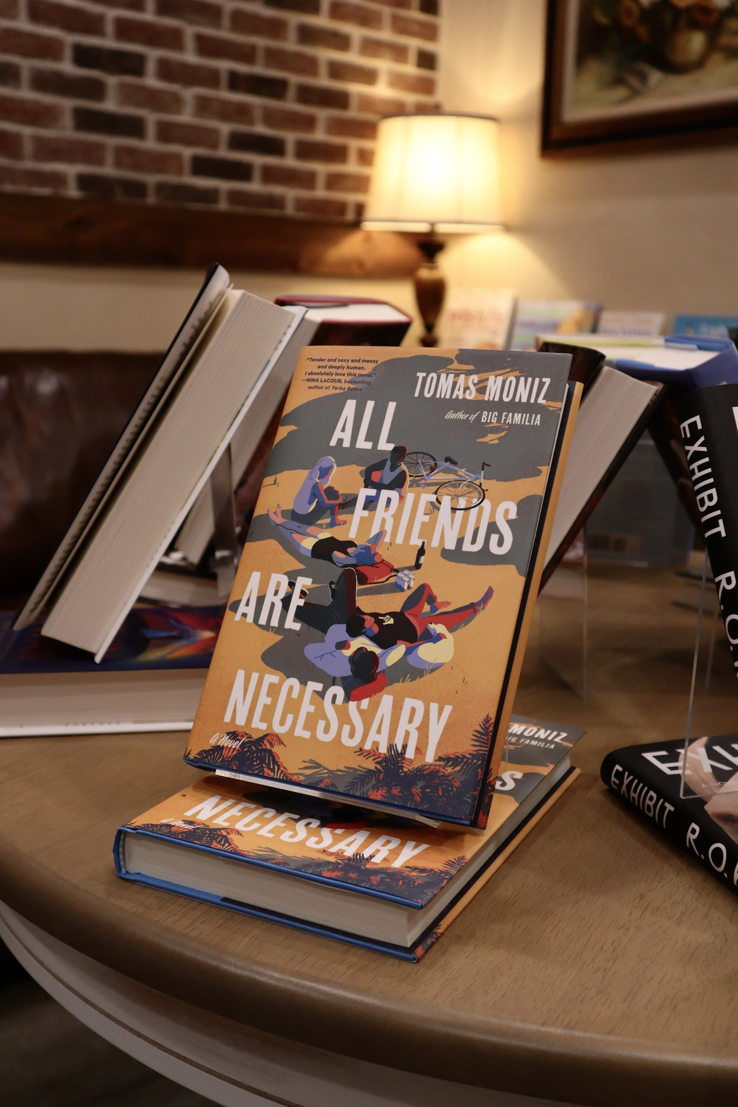 Tomas: Well I did Big Familia and then I wrote another novel that I really liked. It’s from the first person point of view as a woman and, it was funny, my editor looked at it and he was like, ‘You can’t do that.’ I wrote it in 2017, that’s when I was deep in the mindset of that story and I loved it. I loved her voice and I loved what I was doing narratively. I still think it’s one of my best pieces of writing. But [my editor] was like, ‘The time we’re in right now, you have to earn that.’ So we put that aside. But after Big Familia, I decided to write that partially as a challenge to myself to get out of that first person, male, mid-40s POV. I was like, I’m a writer, I can do different things. So then, I wrote a third person, more formal novel about an old man and I loved that one. We sent it out to try and sell and I got a lot of nice rejections and then we were going to go on round two, to [send out to] smaller presses. But then I was asked if I had anything else and I was like, ‘I’ve got this mess of a story,’ then I realized it might be connected to [another story] – because I actually wrote All Friends in two moments of my life, so part one and part three were two different stories initially. Then I realized, oh this is the same voice. So I was like, ‘I’ve got this and it has a lot of sex in it.’ And it sold like that. I also don’t think it’s too far to say that [All Friends] is more familiar to Big Familia. I think when Big Familia did really well in the small press world, people wanted Big Familia part two. And as much as they’re different stories, they’re in the same world and I think that publishing sometimes dictates what they want from you. So, that’s the next challenge: what is book three? I think I’m going back to my old man story, so we’ll see.